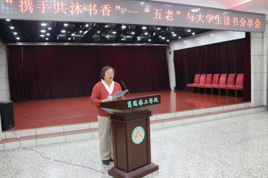 分享会上,4位老教师代表以深厚的学识与丰富的人生阅历对5位学生的读书感悟给予深情回应。其中,蔡玉秋老师精辟阐述“读传记以明志,读哲学以思辨,读历史知兴替,读专业以精业”的读书之道;郑冬梅老师巧妙寄语学子“像鸟飞往你的山”,勇敢追寻理想;徐雅琴老师通过冰心《忆读书》传递“读书好,多读书,读好书”的朴素真理;马凤鸣老师更以凝聚三十年心血的两首原创诗歌将现场气氛推向高潮。