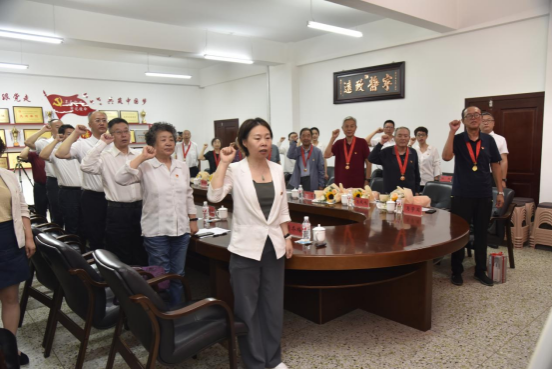 在离退休工作处党委书记肖冬梅的带领下,全体与会党员面向鲜红的党旗庄严宣誓,通过重温入党誓词,牢记共产党员初心使命,坚定继续为党的事业和学校发展贡献智慧和力量的信心和决心。